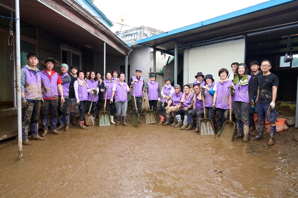 조규식 의장을 비롯한 전체 의원과 의회사무국 직원 등 35명은 12일 이른 아침부터 이번 폭우로 가장 큰 피해가 발생한 용천동 정방마을 수해 현장을 찾아가 주민들을 위로하고 토사물 정비와 폐기물 수거, 집기류 정리 등 수해복구작업에 구슬땀을 흘렸다.