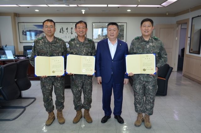 [뉴스서치] 대구 중구의회 김오성 의장은 지난 16일 의회 의장실에서 50사단 대구 중구 예비군지역대장(김영선), 기동대장(박준영), 동인동대장(정두영)에게 표창장을 수여했다.