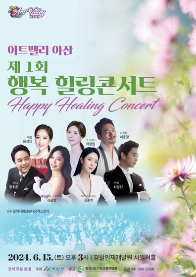 지역주민의 고품격 문화예술 향유 기회 확대와 아산지역의 문화예술 발전을 도모하기 위해 개최된 이번 행복힐링콘서트는 소프라노 김순영·최정원, 메조소프라노 김순희, 바리톤 이응광, 테너 정호윤 등 유명 성악가들과 밀레니엄심포니오케스트라의 협연으로 웅장함을 더했다.