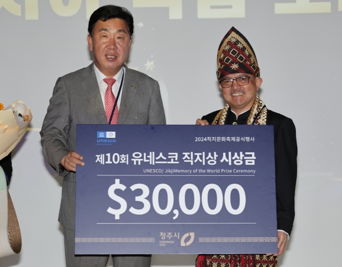 시상식에는 이범석 청주시장, 김현기 청주시의장, 정선용 충북도 행정부지사를 비롯한 내빈과 팍슨반다 유네스코 기록유산담당관, 울프죌터 구텐베르크 박물관장, 기욤 포 프랑스국립도서관(BnF) 문헌실장 등이 외빈으로 참석해 자리를 빛냈다.