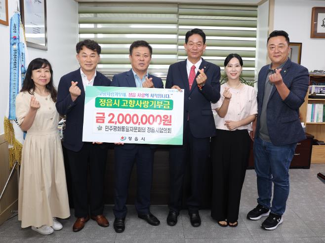 [뉴스서치] 민주평화통일자문회의 정읍시협의회는 22일 정읍시에 고향사랑기부금 200만 원을 기탁하며 지역사회를 위한 나눔을 실천했다.