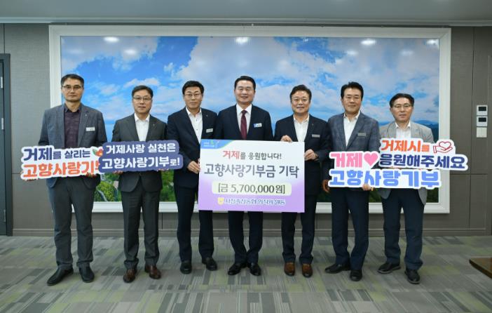 거제시는 10일, 거제축산농협 옥방호 조합장, 사천축산농협 이형주 조합장 및 임직원이 고향사랑기부식에 참석해 570만원의 고향사랑기부금을 각 각 상호 도시에 기탁했다고 밝혔다.