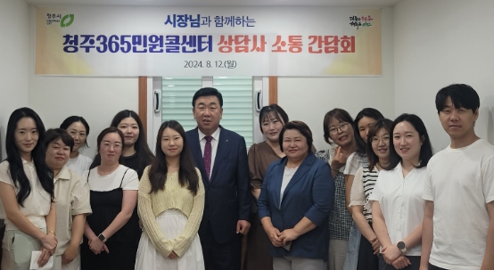 [뉴스서치] 이범석 청주시장은 12일 청주365민원콜센터 상담사들과 간담회를 갖고 민원 응대 일선에 있는 상담사들의 노고를 격려하고 의견을 듣는 시간을 가졌다.