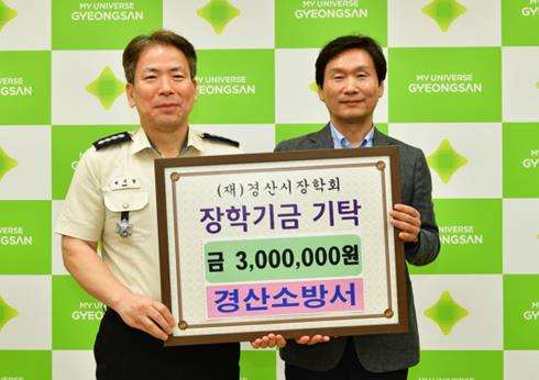 [뉴스서치] (재)경산시장학회는 경산소방서가 13일 시청을 방문하여 인재 육성을 위한 장학금 300만원을 기탁했다고 밝혔다.