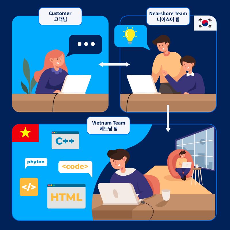 ▲ SotaTek의 베트남-한국 협업 니어쇼어 IT 아웃소싱 프로세스 |