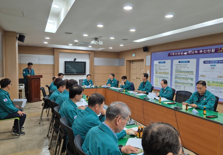 ▲ 영천시는 관내 아프리카돼지열병이 확진됨에 따라 16일 시장 주재로 아프리카돼지열병 위기대응 재난안전대책본부를 구성하고 긴급 대책 회의와 현장점검을 실시했다. |