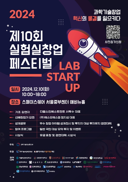 [뉴스서치] 과학기술정보통신부는 12월 10일 스페이스쉐어 서울중부센터에서 「제10회 실험실창업페스티벌」을 개최했다.