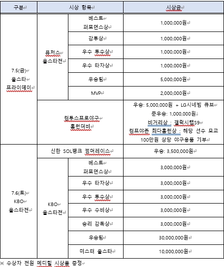 ▲ 2024 신한 SOL뱅크 KBO 올스타전 시상 내역 |