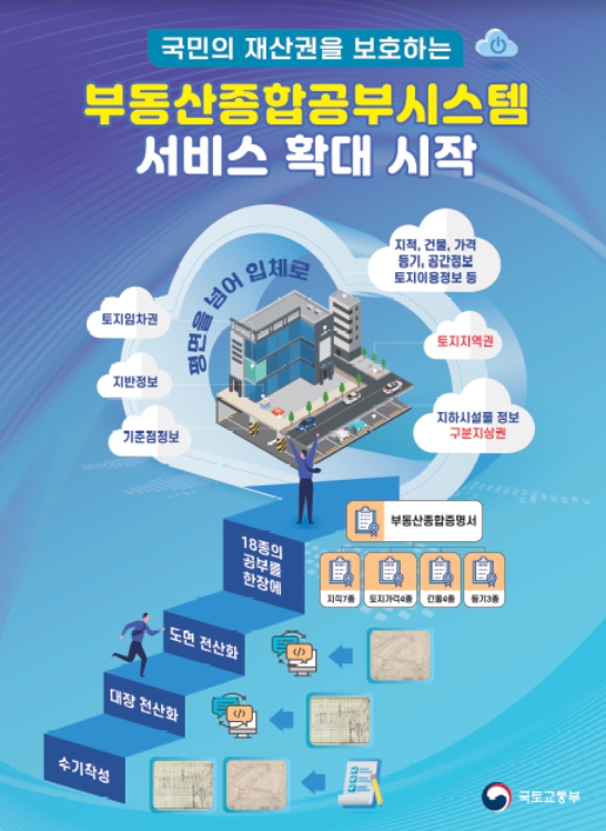 부동산종합공부시스템은 온라인으로 행정업무를 처리하고 토지대장, 지적도 등 부동산정보를 관리하는 국가 대표 부동산 정보시스템이다.