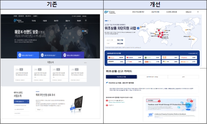 이러한 중소기업들의 애로사항을 해결하기 위해 K-브랜드 위조상품 유통 피해 정보를 국가별, 온라인플랫폼별 등 다양한 형태로 한눈에 파악할 수 있도록 개선했다.