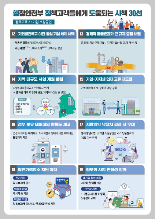 또한, 지자체·새마을금고·지방은행 등이 협력하는 지역맞춤형 금융협력모델을 통해 소상공인 등에게 금융지원을 추진하고, 소기업·소상공인 등이 지방계약에 입찰할 경우에는 과거 납품실적을 10% 가산 반영해 우대할 예정이다(’24.上).