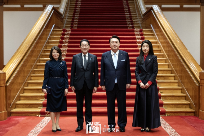 [뉴스서치] 윤석열 대통령 부부는 9월 6일 한국을 방문 중인 기시다 후미오 일본 총리 부부와 일본 대표단을 초청해 청와대 본관에서 2시간 가량 만찬을 가졌다.