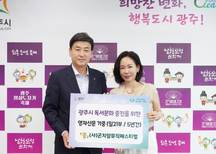 [뉴스서치] (사)곤지암뮤직페스티벌은 6일 광주시 독서문화 발전을 위해 사용되기를 바란다며 영자신문을 광주시에 기탁했다.