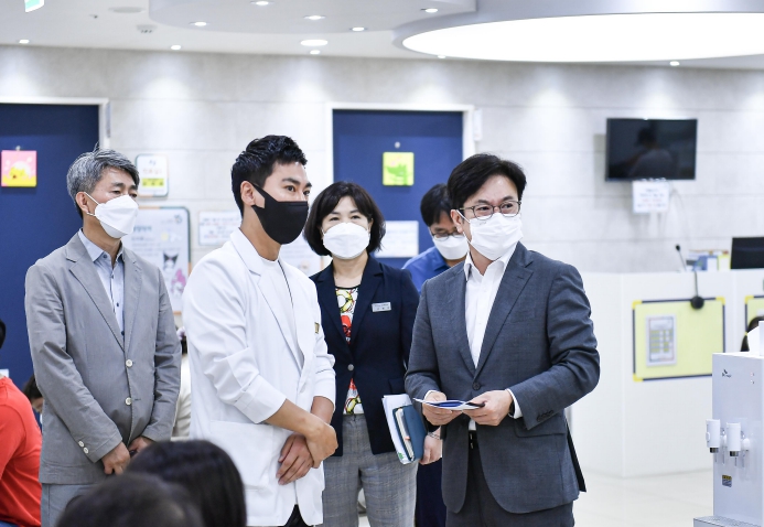 ▲ 김병수 시장이 김포아이제일병원을 방문해 병원 전반을 살피고 직원을 격려했다. |