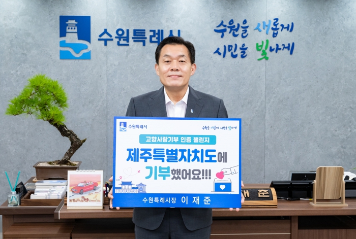 [뉴스서치] 이재준 수원시장이 ‘고향사랑기부 인증 챌린지’에 참여해 제주특별자치도에 고향사랑기부금을 기탁했다.