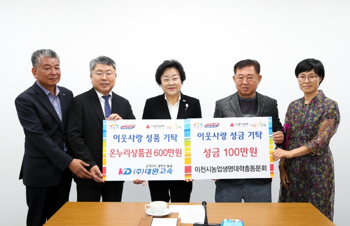 이천시농업생명대학 총동문회에서도 성금 100만 원을 기부했다. 이천시농업생명대학은 최고의 엘리트 농업인을 양성하는 과정으로, 졸업생들은 총동문회를 통해 농촌사회의 리더로 활동하고 있다.