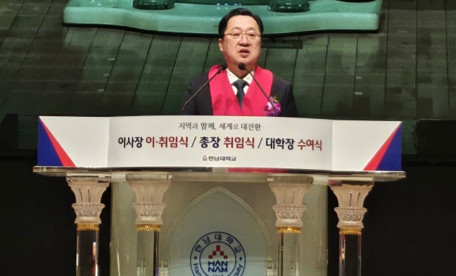 [뉴스서치] 이장우 대전시장은 14일 오후 한남대학교 성지관에서 개최된 ‘한남대 이사장·총장 취임식’에 참석했다.