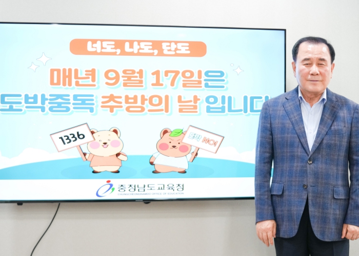 [뉴스서치] 충남교육청 김지철 교육감은 8월 27일 청소년 도박 문제에 대한 사회적 경각심을 높이고 예방 활동을 촉진하기 위해 도박중독 추방 캠페인에 참여했다.