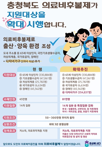 ▲ 충북도, 2자녀 이상 다자녀가구 의료비후불제 확대 지원 |