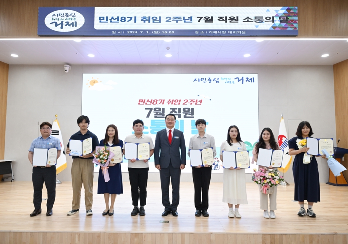 [뉴스서치] 거제시는 지난 1일, 직원소통의 날을 맞아 2024년 상반기 친절공무원 6명을 선정해 시상했다.