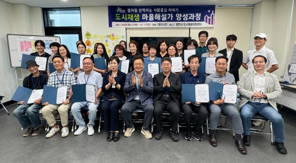 [뉴스서치] 영천시는 지난 17일 시민 33명이 참석한 가운데 도시재생 주민역량 강화사업의 일환인 도시재생 투어 프로그램 및 마을해설가 양성 교육의 수료식을 개최했다.
