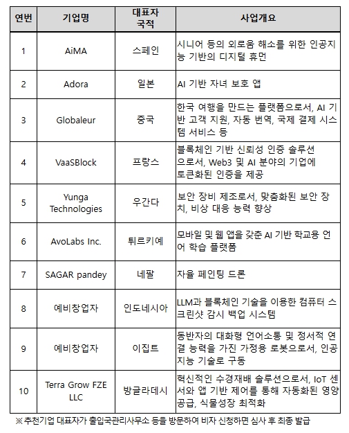 ▲ 스타트업 코리아 특별비자 추천기업 |