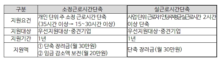 ▲ 워라밸일자리장려금 유형별 주요 내용 비교 |