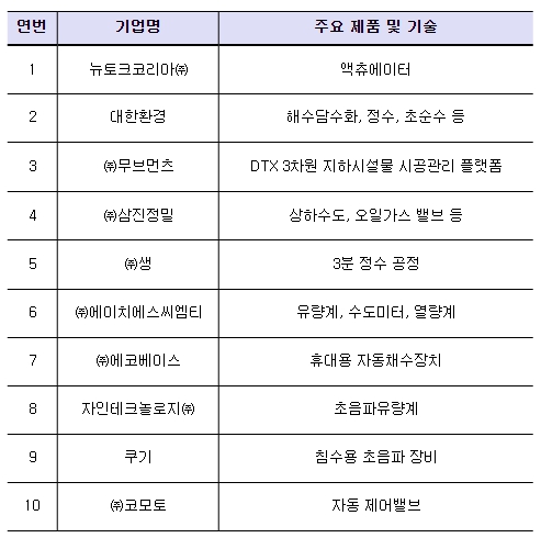▲ 민관 물산업 협력사절단 참여기업 현황 |
