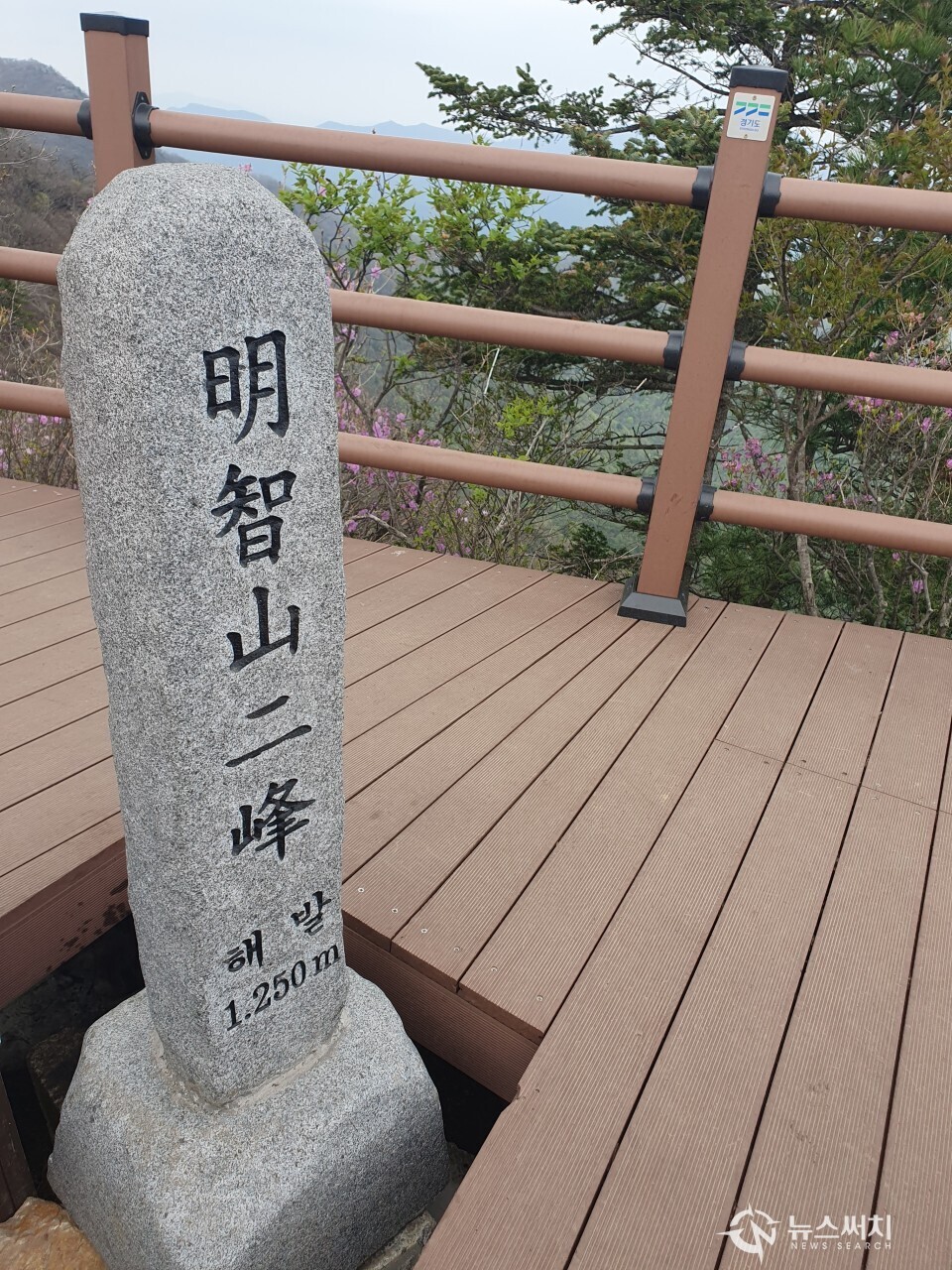 기자는 ‘명지3봉’에서 주변 산들을 맘껏 조망한 뒤 오후 4시 8분 북동쪽 방향으로 난 능선을 따라 걸음을 재개하였고, 오후 4시 31분 해발 1,250m 높이의 ‘명지2봉’에 도착하였다.
