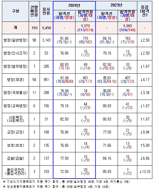 [뉴스서치] 2024년도 국가공무원 5급 공개경쟁채용 및 외교관후보자 선발 제1차시험 합격자가 발표됐다.