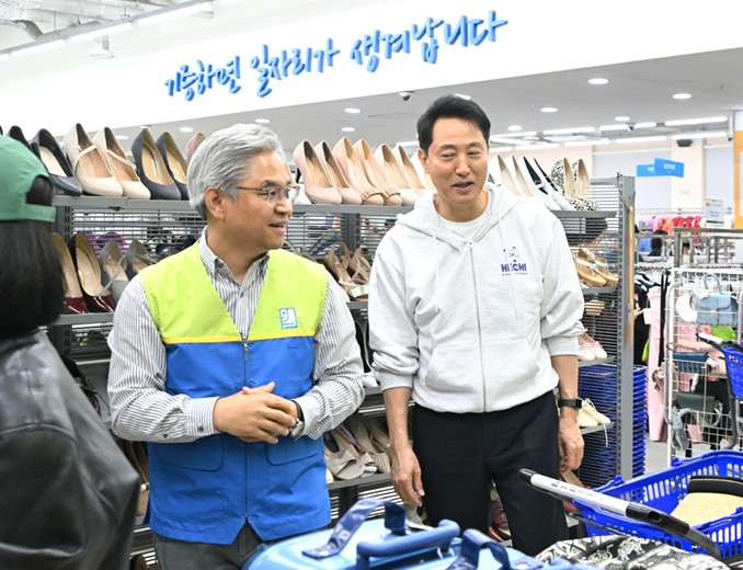 | ▲ 20일 굿윌스토어 1호점을 찾은 오세훈 서울시장이 현장을 점검하고 있다. |