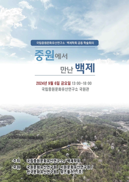[뉴스서치] 국가유산청 국립문화유산연구원 국립중원문화유산연구소는 백제학회(회장 박현숙)와 함께 9월 6일 오후 1시 국립중원문화유산연구소 국원관(충북 충주시)에서 중원지역에 남아있는 백제의 흔적을 살펴보는'중원에서 만난 백제'학술대회를 개최한다.