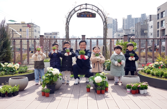 이 구청장과 어린이 그리고 관계자 20여 명은 봄꽃 2,000본을 심으며 바람정원을 봄으로 채웠다. 어린이들은 ‘구청장 할아버지’를 따라 꽃을 심고 물을 주는 체험을 하며 웃음까지 가득 채웠다.