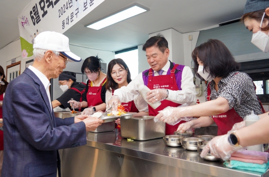 ▲ 보훈나눔행사에서 이필형 동대문구청장이 국가보훈대상자들을 위해 직접 배식을 하고 있다. |