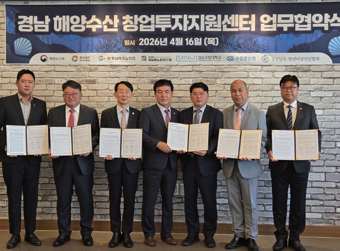 [뉴스서치] 경상국립대학교 해양과학대학은 경상남도 해양수산 창업투자 활성화를 위해 4월 16일 경남테크노파그에서 경상남도, 경남테크노파크, 경남항노화연구원, 수협중앙회 경남본부, 경상남도 청년어업인연합회 등과 업무협약(MOU)을 체결했다.
