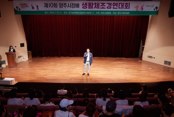 [뉴스서치] 강수현 양주시장이 27일 오후 양주시체육회에서 주최하고 양주시체조협회가 주관한 ‘제10회 양주시장배 생활체조경연대회’의 방문해 참가 선수들을 격려하고 있는 모습이다.