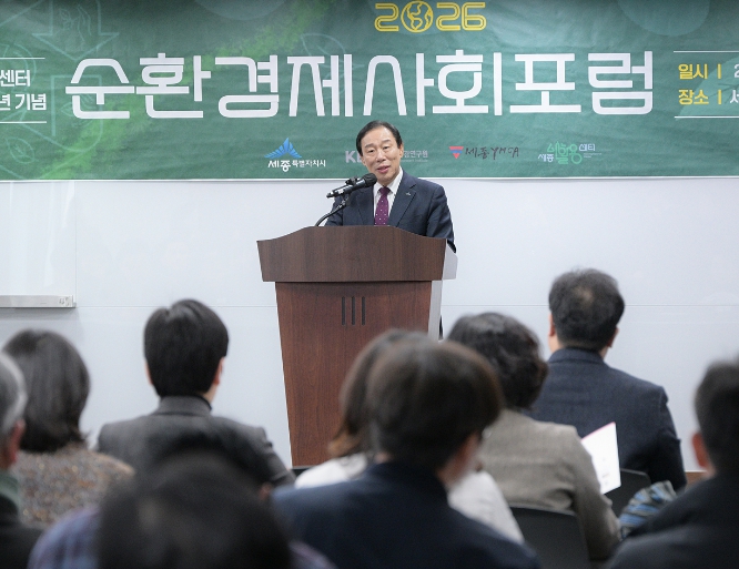 [뉴스서치] 세종특별자치시가 6일 시청에서 세종새활용센터 개소 1주년을 기념하는 ‘2026 순환경제사회 포럼’을 개최했다.
