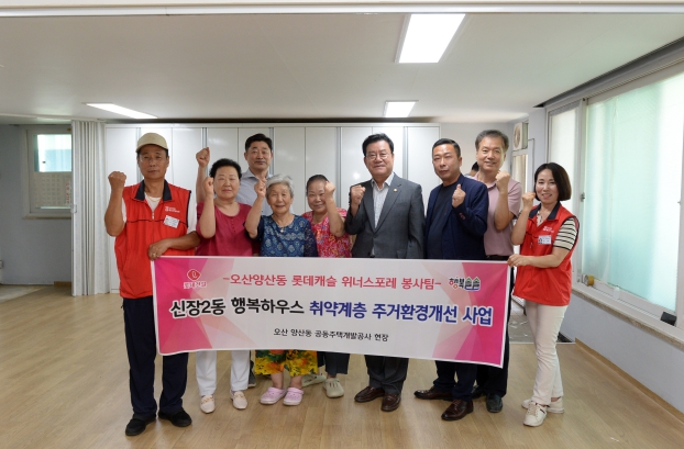 [뉴스서치] 오산시의회 이상복의장과 양산동 롯데캐슬 위너스포레 봉사팀은“행복하우스 취약계층 주거환경 개선사업”을 지난 19일 신장2동 은계주공아파트 경로당에서 실시했다.
