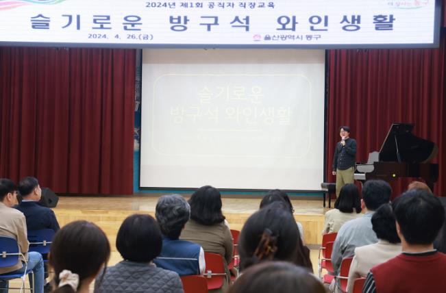 이어 이날 오후 2시에는 동구청 2층 대강당에서 동구청 공무원 200여명이 참석한 가운데 ‘슬기로운 방구석 와인생활’ 이라는 주제로 제1회 공직자 직장교육이 열렸다.