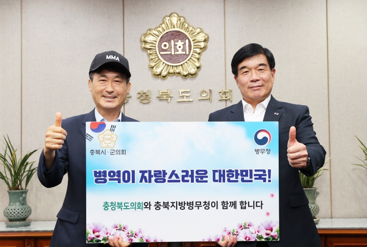 ‘병역이행 감사 챌린지’는 병역 이행자들이 존경받는 사회 분위기를 조성하기 위해 충북지방병무청과 도내 11개 시·군 의회가 참여해 릴레이 방식으로 진행됐다.
