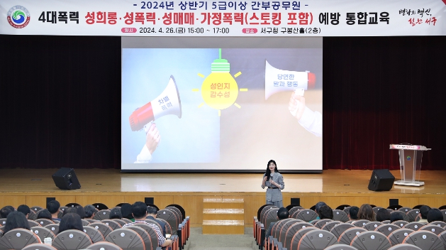 [뉴스서치] 대전 서구는 26일 청사 구봉산홀에서 ‘2024년 상반기 5급 이상 간부공무원 4대 폭력 예방 통합교육’을 실시했다.