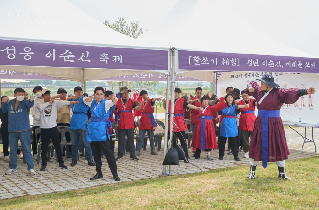 이와 함께 활쏘기 체험장 ‘이순신, 미래를 쏘다’를 운영한다. 안전 통제 아래 활쏘기 체험, 활쏘기 개인전 경기 등과 함께 병장기 전시·관람이 진행된다.