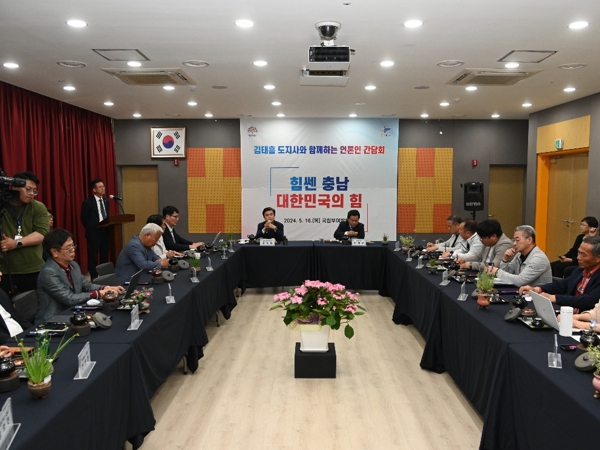 김 지사는 16일 민선8기 3년차 시군 방문 두 번째 일정으로 부여군을 방문, 부여박물관 사비마루에서 언론인 간담회를 가졌다.