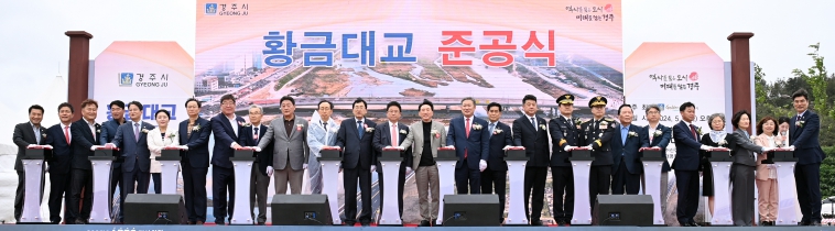 [뉴스서치] 이철우 경상북도지사는 7일 경주시 현곡면 나원리 형산강 현장에서 김석기 국회의원, 주낙영 경주시장, 지역 도․시의원 등과 함께 1,000여 명의 주민들이 참석한 가운데 황금대교 준공식을 개최했다.