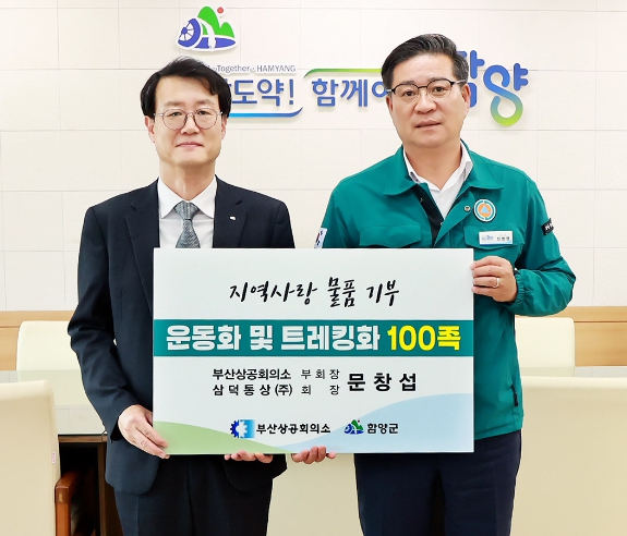 ▲ 부산상공회의소, 함양군에 운동화·등산화 100켤레 기탁 |