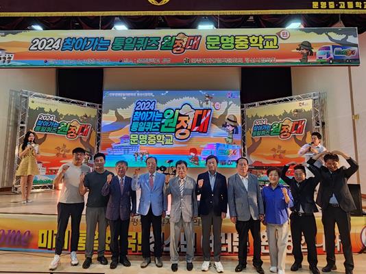 [뉴스서치] 민주평화통일자문회의 경산시협의회는 3일 문명중학교 대강당에서 문명중학교 1, 2학년 학생 250명이 참가한 가운데‘2024 찾아가는 통일퀴즈 원정대’를 개최했다.