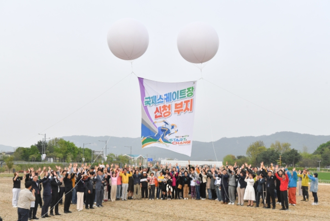 이날 참석자들은 광사동 나리농원 내 애드벌룬을 설치하여 공중에 띄우는 퍼포먼스를 통해 국제스케이트장 유치를 향한 시민들의 염원을 표현했다.