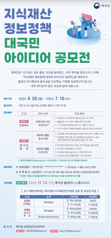 ▲ 2024 지식재산 정보정책 대국민 아이디어 공모전 포스터 |