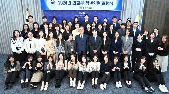 [뉴스서치] 외교부는 4월 1일 광화문 외교부 청사 18층 서희홀에서 2024년 외교부 청년인턴 출범식을 개최했다고 밝혔다. 이날 행사에는 조태열 외교장관과 청년인턴 1기 56명, 청년인턴 근무 예정 부서 직원 30여 명이 참석했다.