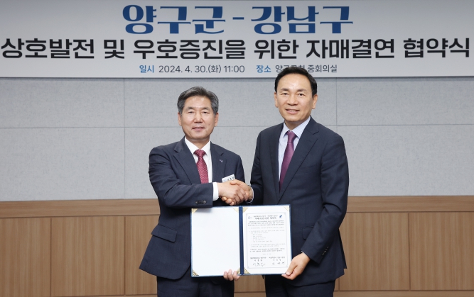 조성명 강남구청장은 “우수한 인프라와 관광자원을 가진 양구군과 함께 다양한 분야에서 긴밀하게 협력하고 교류하겠다”며 “양 지자체가 동반 성장하며 대한민국의 발전을 선도해 나가겠다”고 밝혔다.
